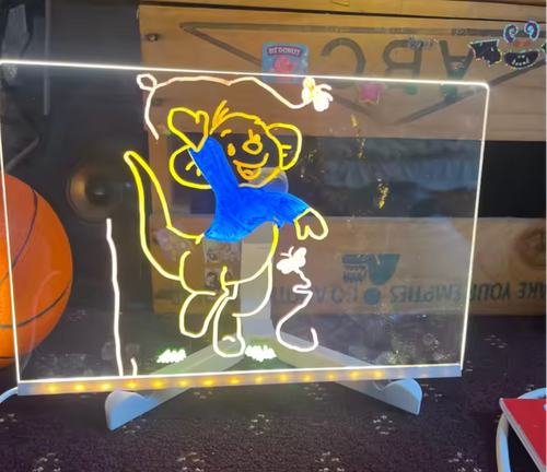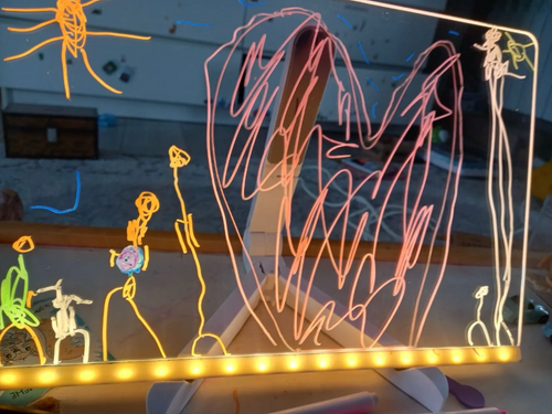 Muy buena compra. Mi hijo es fan de los dibujos y esta pizarra le permite crear lo que quiera. La luz hace que todo se vea mágico.