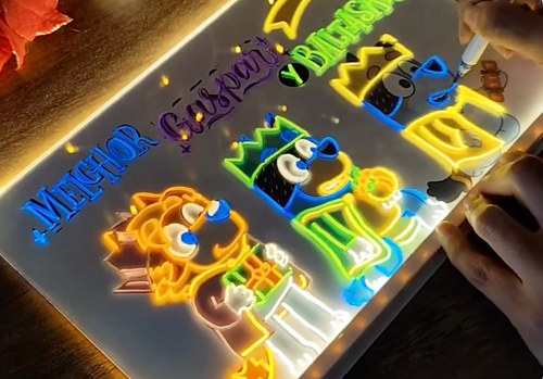 Cada trazo se ilumina, cada dibujo cobra vida. ¡Así se divierten con su pizarra luminosa!